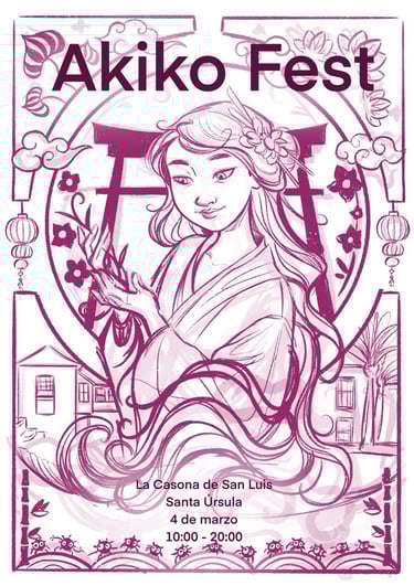 Durante el 2023 realicé los carteles generales y el cartel principal para el evento Akiko Fest en el año 2023 y en el año 2024